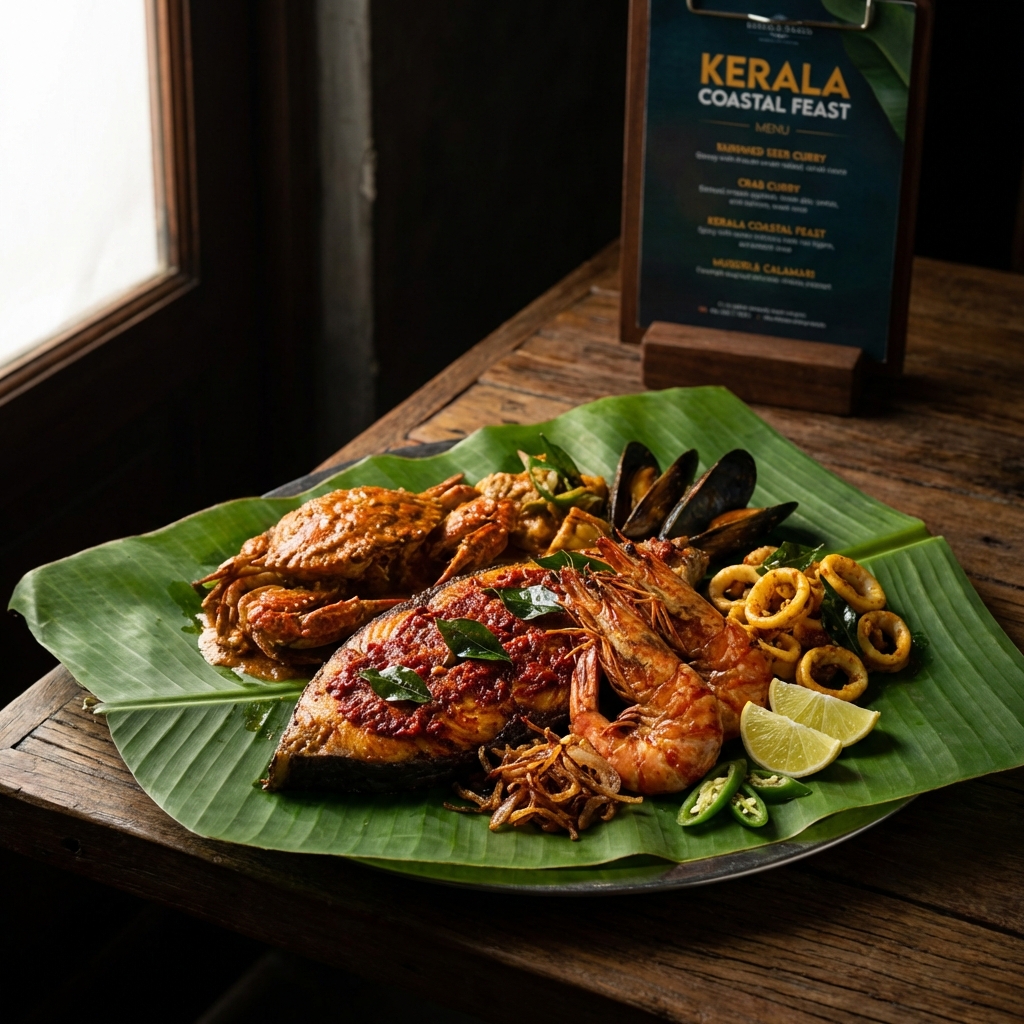 Pearl Spot fish marinated in hand-ground masalas and grilled in banana leaf.